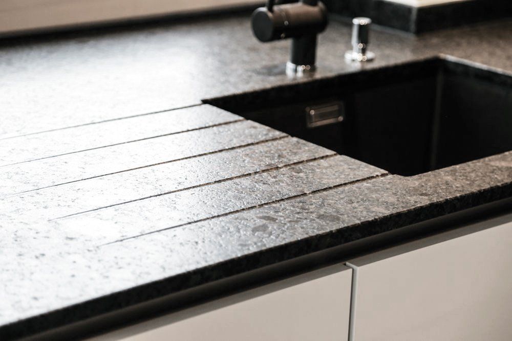 Neben polierten, satinierten, matt geschliffenen und geflammt gebürsteten Oberflächen bieten wir auch Materialien mit exklusiver Oberflächenbearbeitung an.
