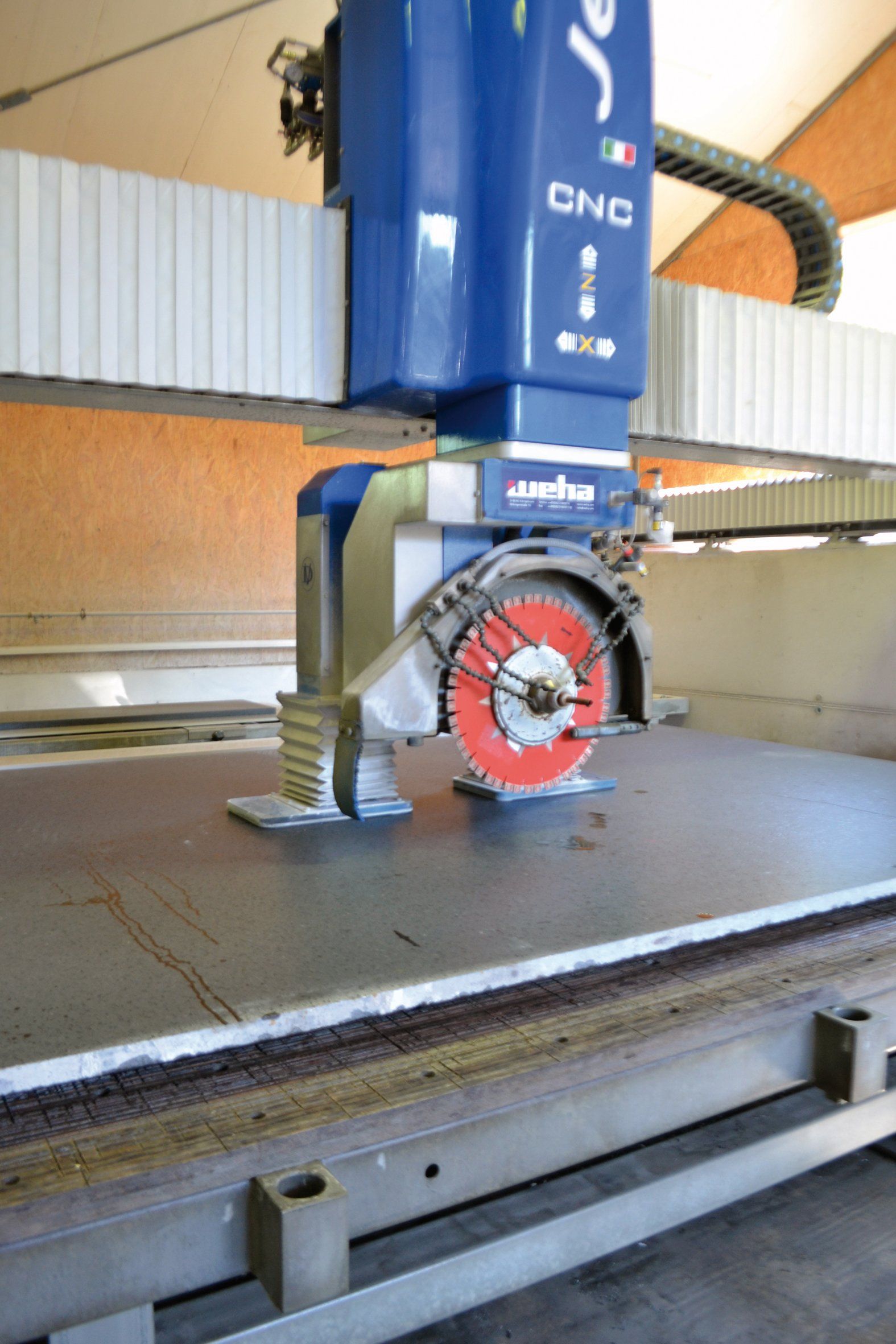 Mit unserer CNC gesteuerten Brückensäge erfüllen wir Ihre Kundenwünsche in höchster Präzision.